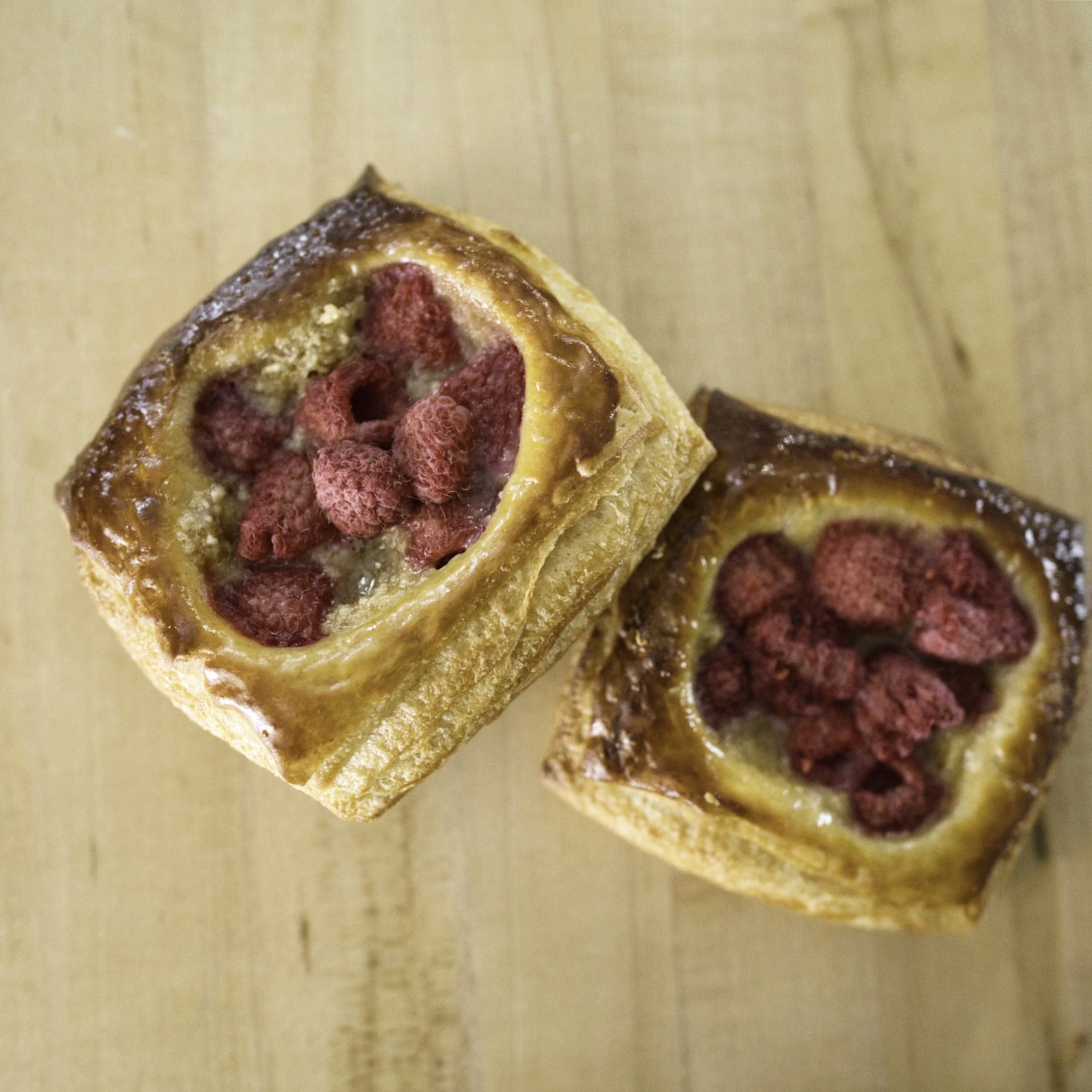 A sweet laminated tart topped with fresh local fruit.