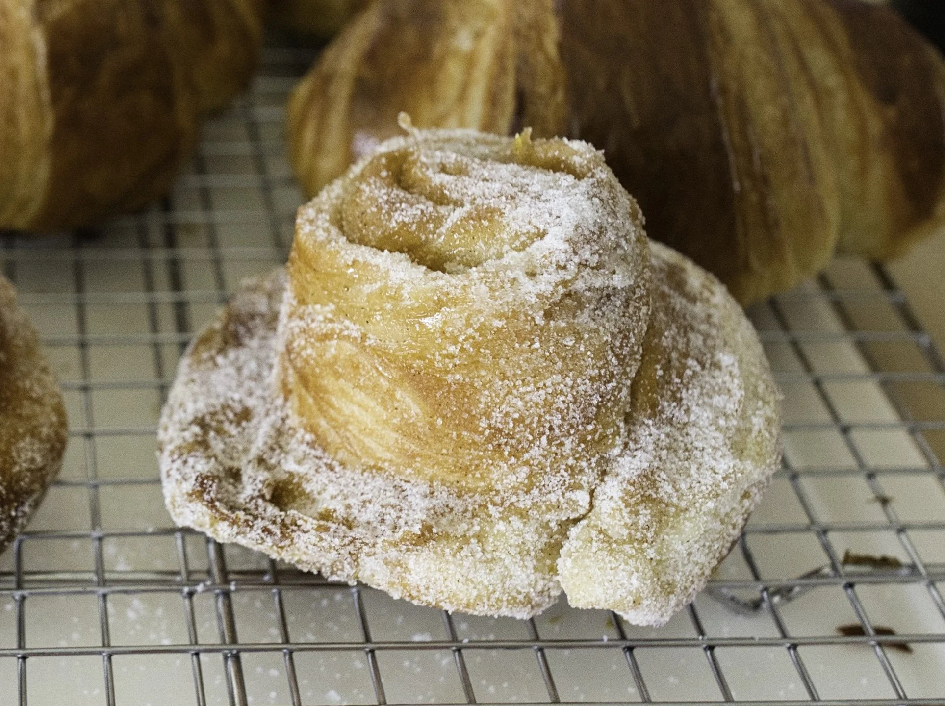 A sweet, light, flakier version of the cinnamon bun. Best paired with an unsweetened coffee drink.